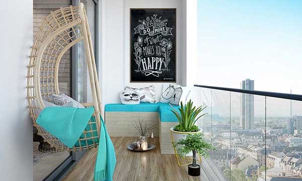 9. برای تبدیل بالکن به فضای دنج صندلیهای آویزان اضافه کنید