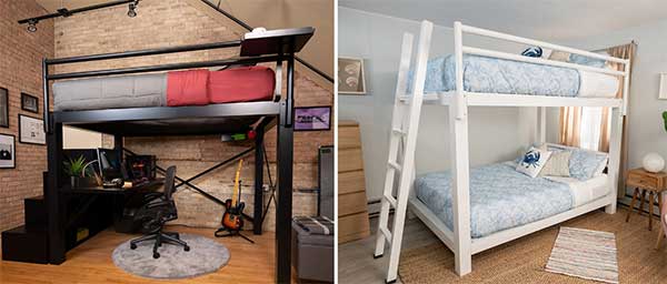 اگر نمیتوانید ابعاد طولی و عرضی تخت را بیشتر کنید، کافیست به سمت بالا بروید! تختهای دوطبقه یکی از بهترین گزینهها برای صرفهجویی در فضا هستند. اگر دختر و پسری دارید که باید یک اتاق خواب مشترک داشته باشند، تختهای دوطبقه بهترین گزینه محسوب میشوند. به این ترتیب نیاز به خرید تختخواب اضافی یا دونفره نخواهید داشت.