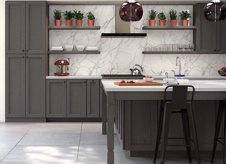 در دکوراسیون آشپزخانه خود بهتر است بین کابینتها از قفسههای چوبی یا شیشهای استفاده کنید و روی آنها وسایل دکوری یا وسایل کم مصرف خود را قرار دهید. اینکار جو سنگین آشپزخانه را از بین میبرد و محیط را جذابتر میکند.