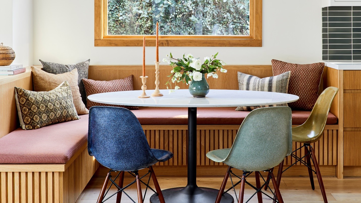از نیمکت هم میتوانید برای اضافه کردن تعداد نفرات به میز ناهارخوری کمک بگیرید. این کار باعث میشود تا فضای اطراف میز شما افزایش پیدا کند.