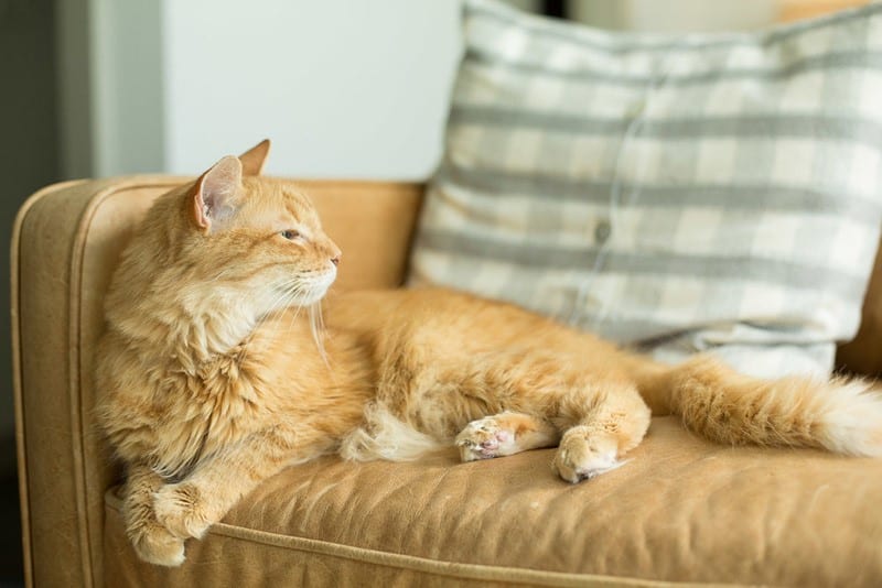 حیوان خانگی (گربه) در حال استراحت روی مبل راحتی