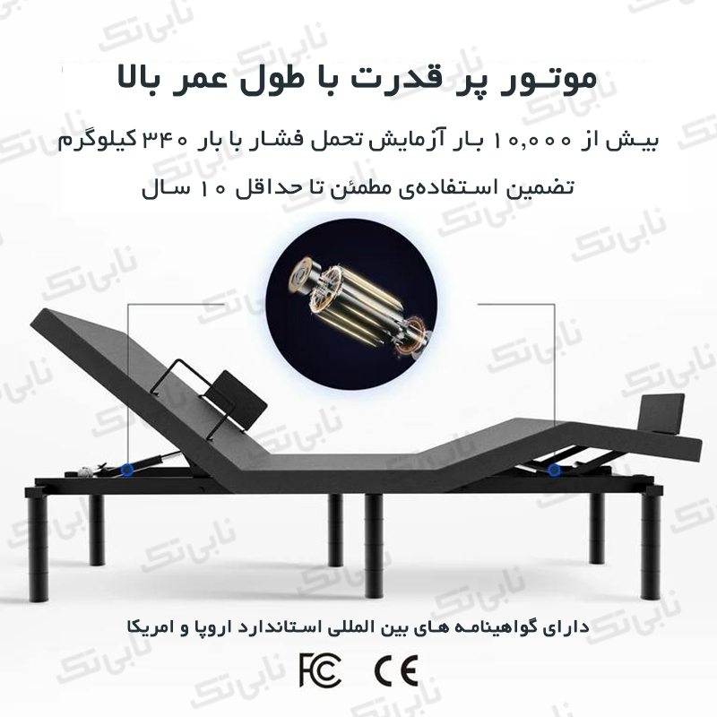 با قابلیت تنظیم ارتفاع و زاویه برای قسمت سر و پاها، مناسب برای مطالعه، تماشای تلویزیون یا استراحت. - موتور پرقدرت و بادوام:
