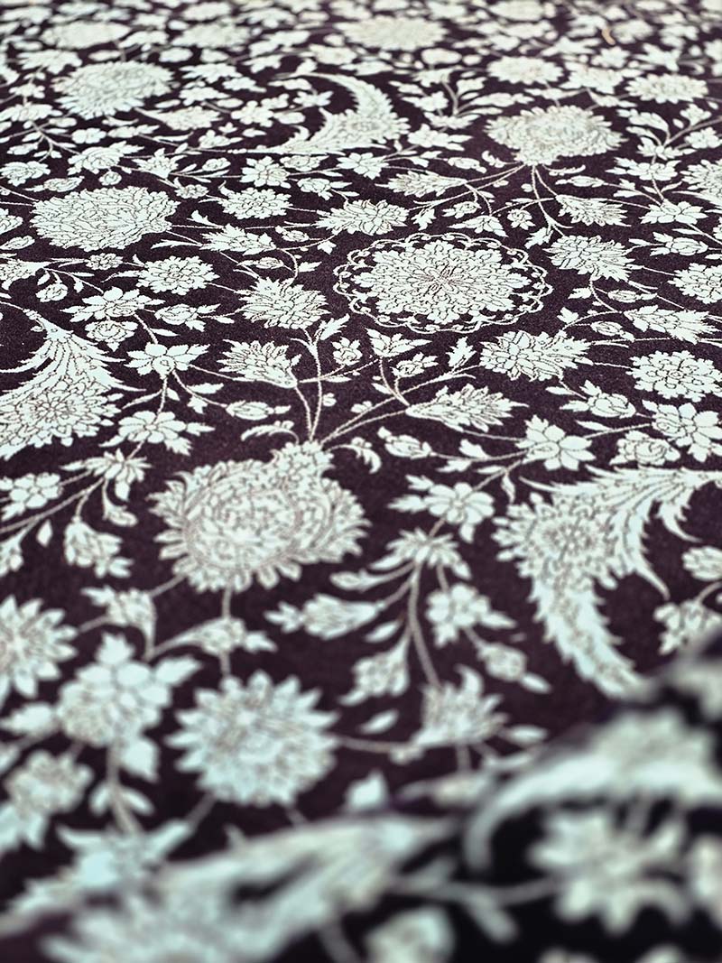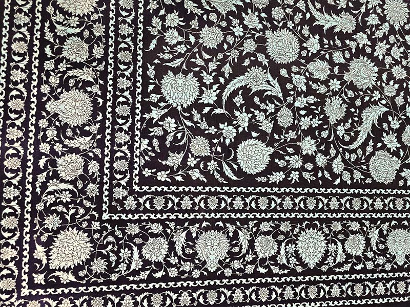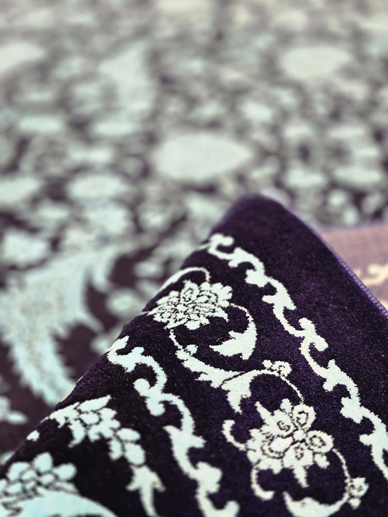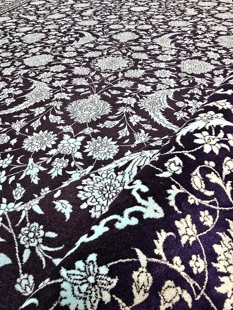 فرش ماشینی مدرن سیزان کاشان شامل : تراکم عرضی فرش (شانه) : 1200 شانه – تراکم طولی فرش : 2400 – تراکم گره : 350000 – گره نوع بافت : گل برجسته – ارتفاع نخ خاب : 1 ± 6 – جنس نخ خاب : میکروفیلامنت – جنس نخ تار : پلی استر و پنبه – جنس نخ پود : پنبه و جوت است.