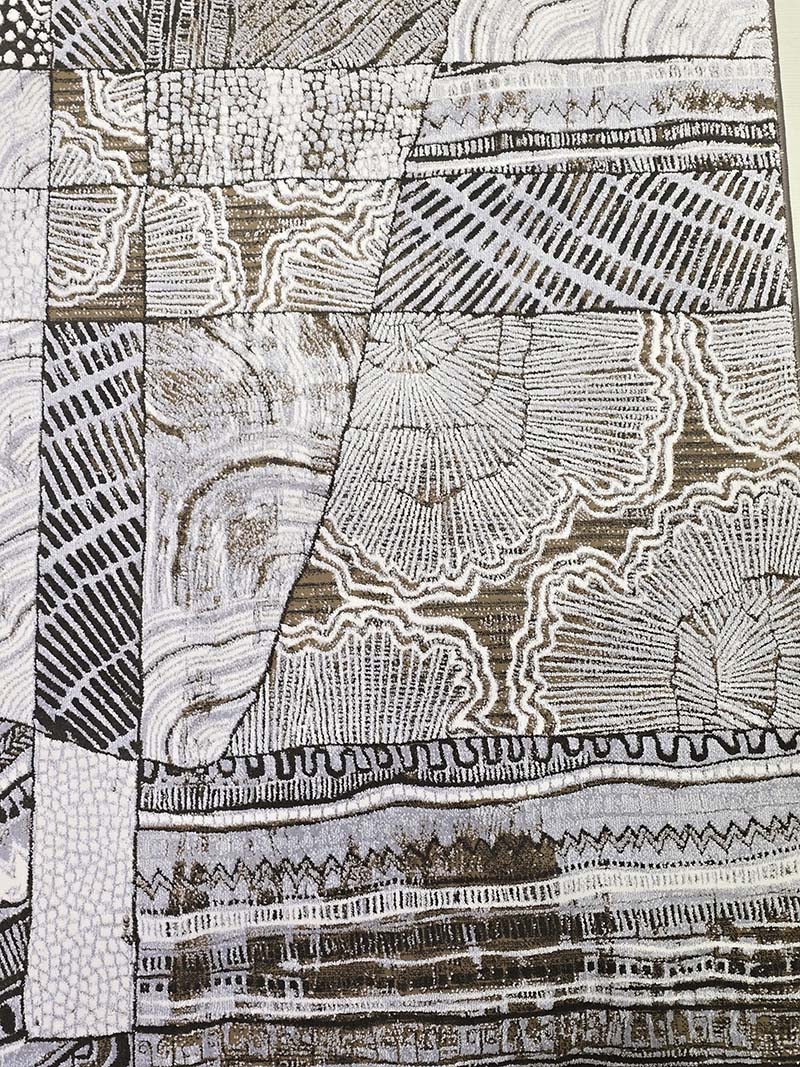 فرش ماشینی مدرن سیزان کاشان شامل : تراکم عرضی فرش (شانه) : 1200 شانه  – تراکم طولی فرش : 2400  – تراکم گره : 350000 – گره نوع بافت : گل برجسته – ارتفاع نخ خاب : 1 ± 6 – جنس نخ خاب : میکروفیلامنت – جنس نخ تار : پلی استر و پنبه – جنس نخ پود : پنبه و جوت است.