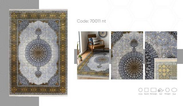 فرش ماشینی کد 70011nt شامل : تراکم عرضی فرش (شانه) : 700 شانه – تراکم طولی فرش : 2100 – تراکم گره : 350000 – گره نوع بافت : گل برجسته – ارتفاع نخ خاب : 1 ± 6 – جنس نخ خاب : میکروفیلامنت – جنس نخ تار : پلی استر و پنبه – جنس نخ پود : پنبه و جوت است.