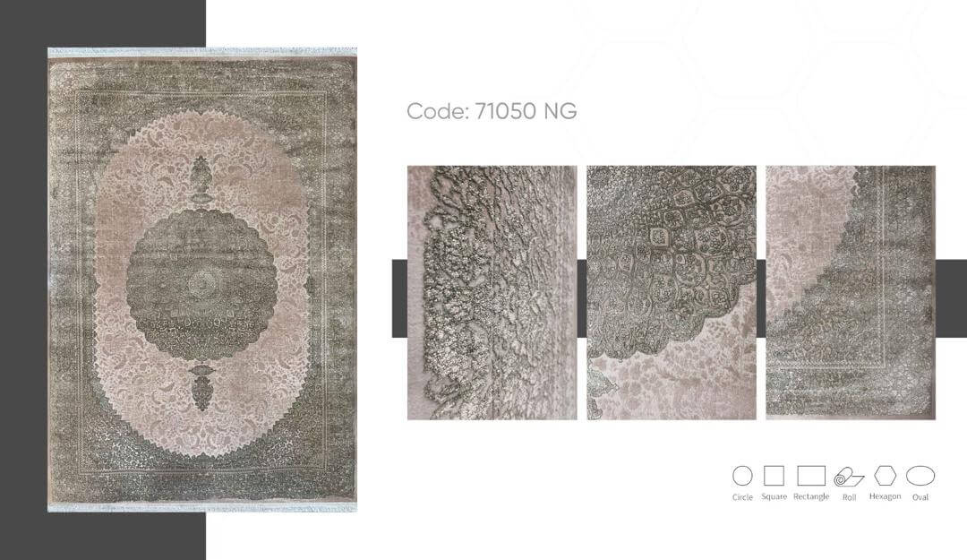 فرش ماشینی کد 71050ng شامل : تراکم عرضی فرش (شانه) : 700 شانه – تراکم طولی فرش : 2100 – تراکم گره : 350000 – گره نوع بافت : گل برجسته – ارتفاع نخ خاب : 1 ± 6 – جنس نخ خاب : میکروفیلامنت – جنس نخ تار : پلی استر و پنبه – جنس نخ پود : پنبه و جوت است.