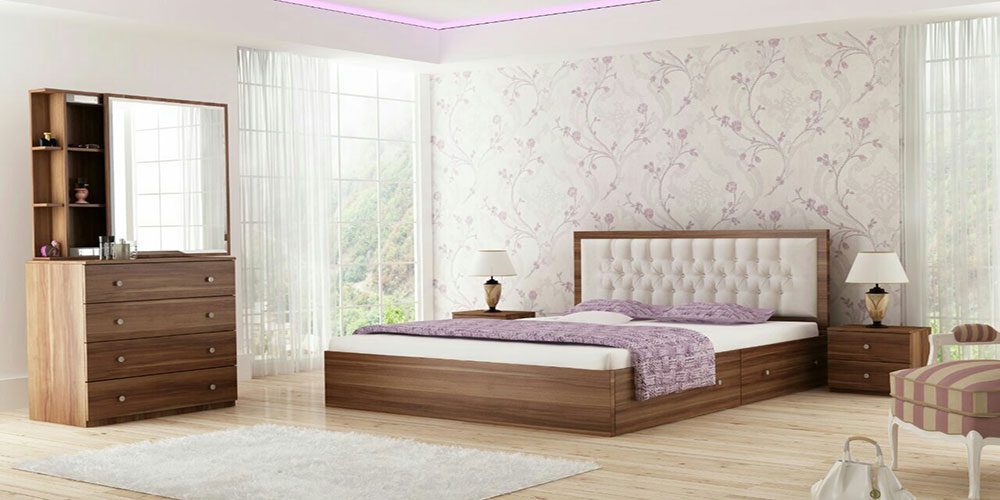 1 – تختخواب شامل تاج و باکس با کف تخت ساده