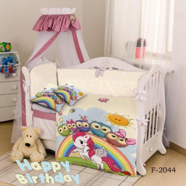 - نوزادی 7 تکه : (3 عدد گارد، 1 عدد لحاف، 1 عدد تشک، 2 عدد روبالشی)