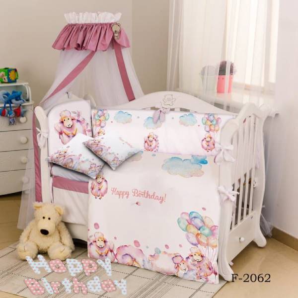 - نوزادی 7 تکه : (3 عدد گارد، 1 عدد لحاف، 1 عدد تشک، 2 عدد روبالشی)