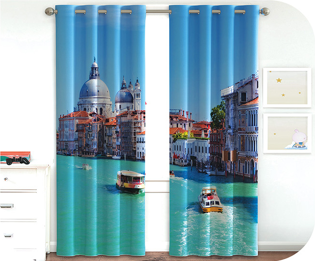 پرده چاپی کد 726728 با نقش شهر ساحلی در تابستان و طرح دوقواره متفاوت با ترکیب رنگ آبی یک انتخاب مدرن و شیک برای اتاق نشیمن و اتاق خواب است . این پرده زیبا، از چاپ طرح های جذاب و خیره کننده بر روی یک پارچه صاف و کاملا سفید بدست می آید. طرح های چاپ شده معمولا حالت سه بعدی دارند و جذابیت خاصی به فضا میدهند .