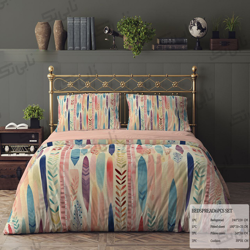 - دونفره 8 تکه : ( 1 عدد کاور تشک کشدوز، 2 عدد روبالشی طرحدار، 2 عدد کاور کوسن طرحدار، 2 عدد روبالشی ساده، 1 عدد لحاف با کاور دوخته شده )