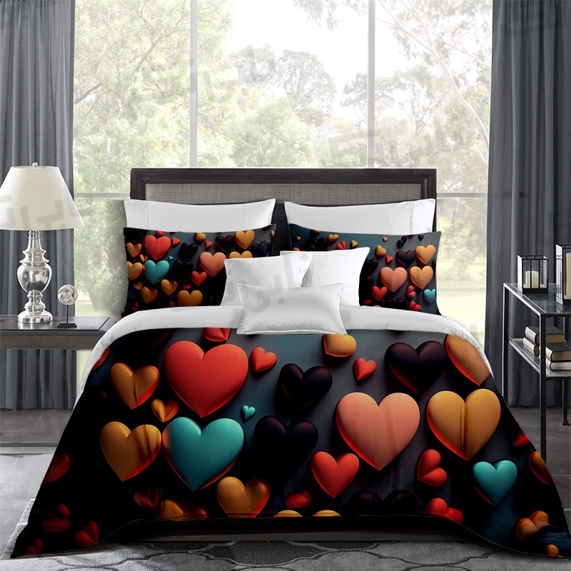روتختی سه بعدی کتان مخمل مدیترانه ای طرح قلب مدرن – کد nt0014