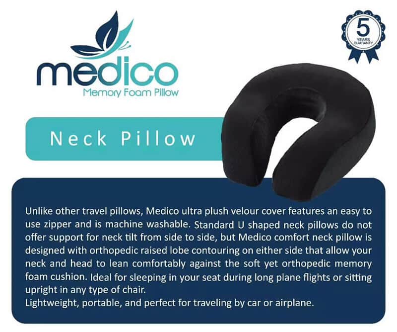 بالش دورگردنی مدیکو یک محصول کارآمد و طبی است که برای هر شخصی در هر سنی قابل استفاده میباشد. نشستن طولانی مدت در هواپیما، خودرو، قطار و یا در محل کار به ماهیچه های گردن فشار وارد میکند و سر از حالت ایستای خود خارج میشود، این امر سبب فشار به ناحیه گردن و احساس درد در قسمت گردن میشود. استفاده از بالش دورگردنی مموری فوم دکتر بیست سر و گردن را در حالت ایستای خود نگه میدارد و از فشار به این ناحیه جلوگیری میکند.