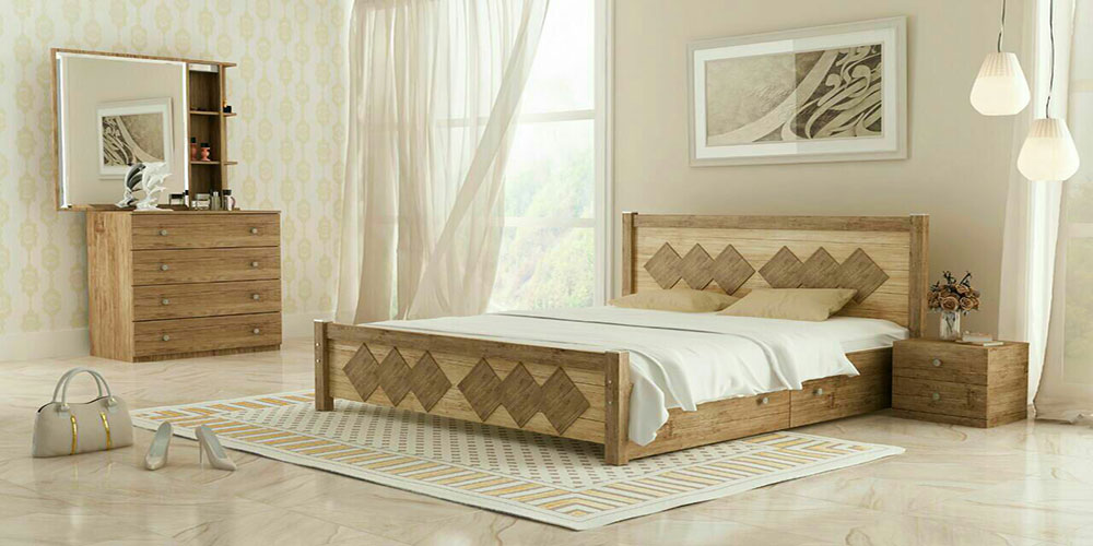 1 – تختخواب شامل تاج و باکس با کف تخت ساده